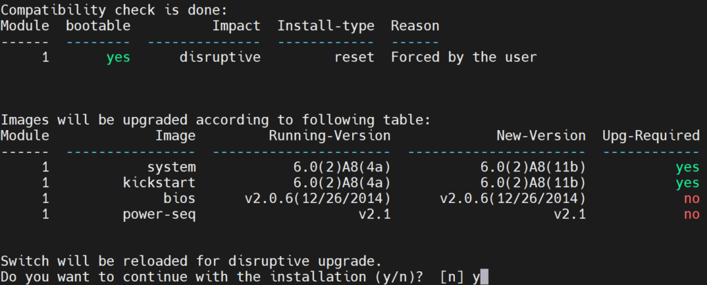 install all kickstart bootflash:///n3500-uk9-kickstart.6.0.2.A8.11b.bin system bootflash:///n3500-uk9.6.0.2.A8.11b.bin
