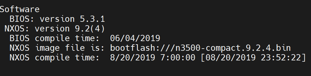 更新後驗證: 更新後,將只看到 NXOS 版本,因為 kickstart 和 system 映像已整合到 compact 映像中 。(這邊我只有截到9.2.4的紀錄)
